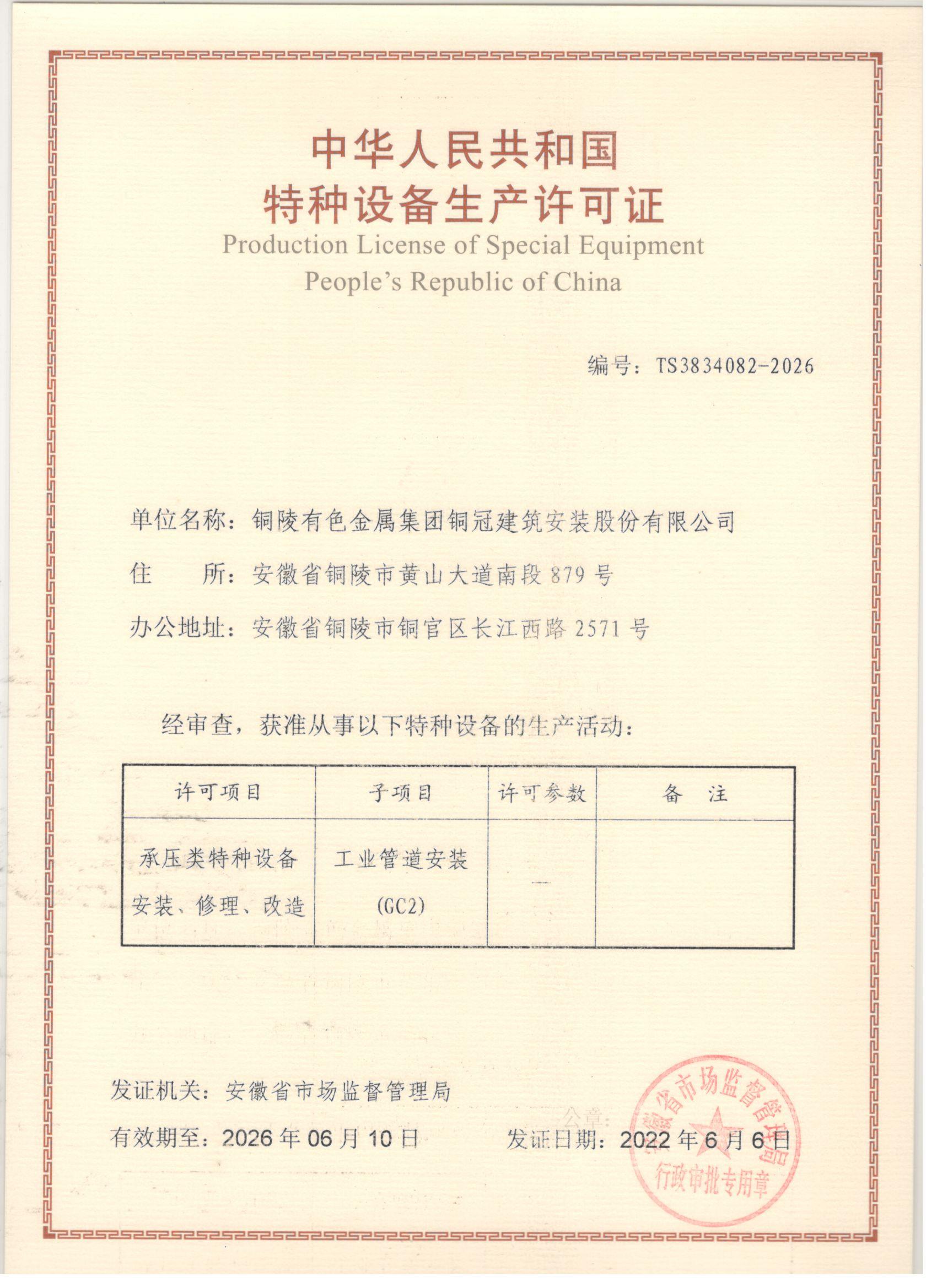 特种装备装置刷新修理允许证-压力管道